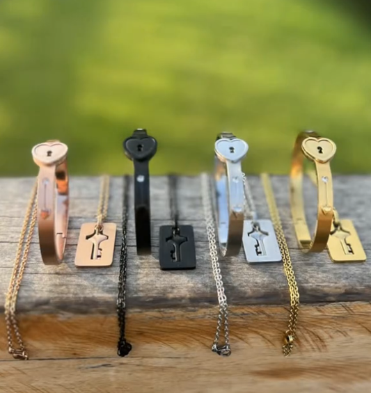 Brazalete de Corazón 💖 + Collar con Llave 🔑 - Amor eterno 🔐 + RAMO DE FLORES🌸